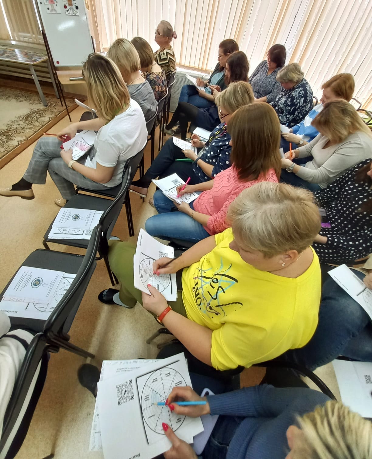 ✔Педагоги смогли на себе опробовать техники работы с ассоциативными картами, а также возможности работы с бессознательным в поиске ресурсов для восполнения дефицитарных сфер своей собственной жизни на примере техники "Колесо жизненного баланса".