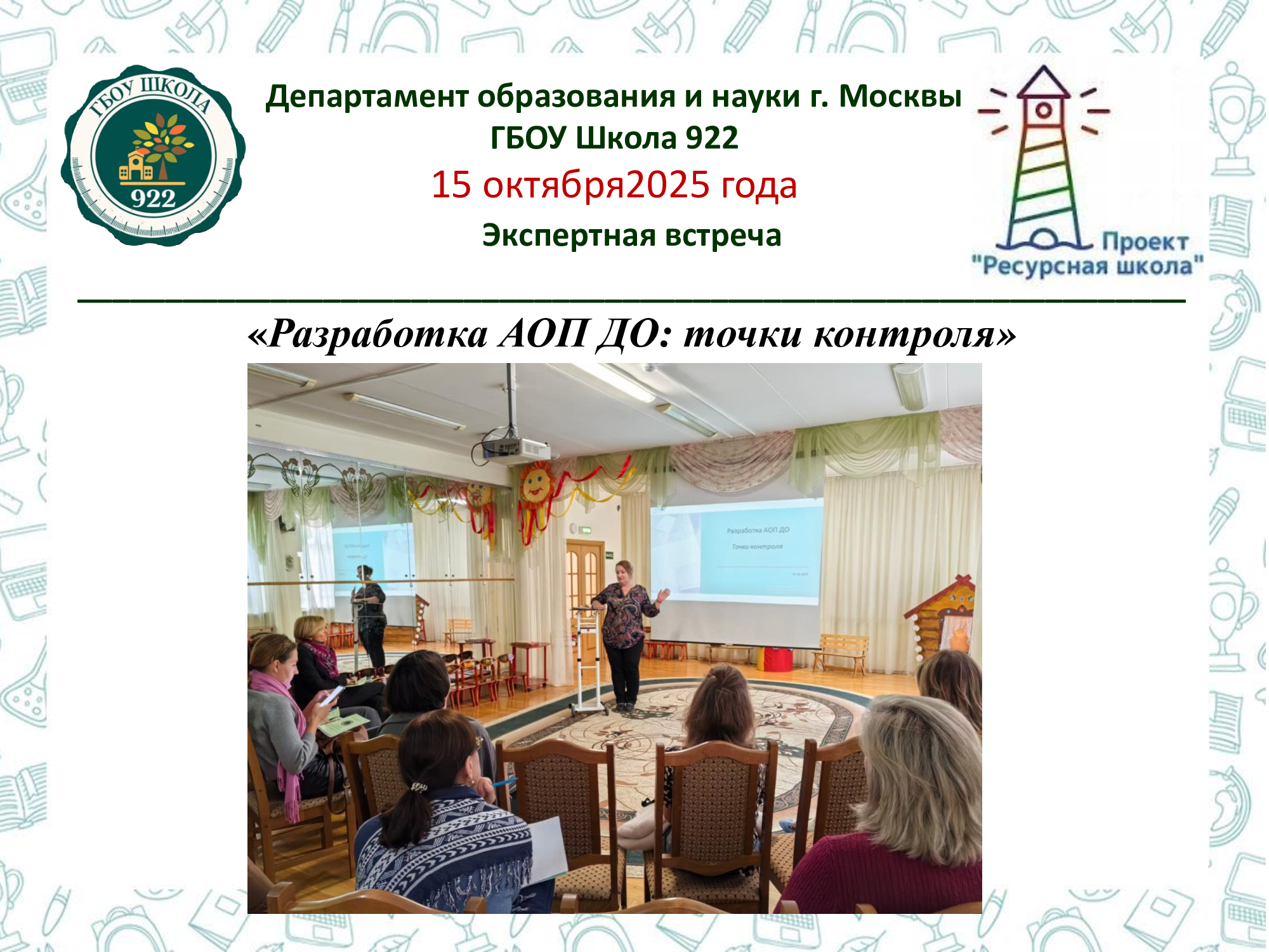 15 октября — прошла экспертная встреча специалистов МРСД № 13 по теме: «Разработка АОП ДО: точки контроля»