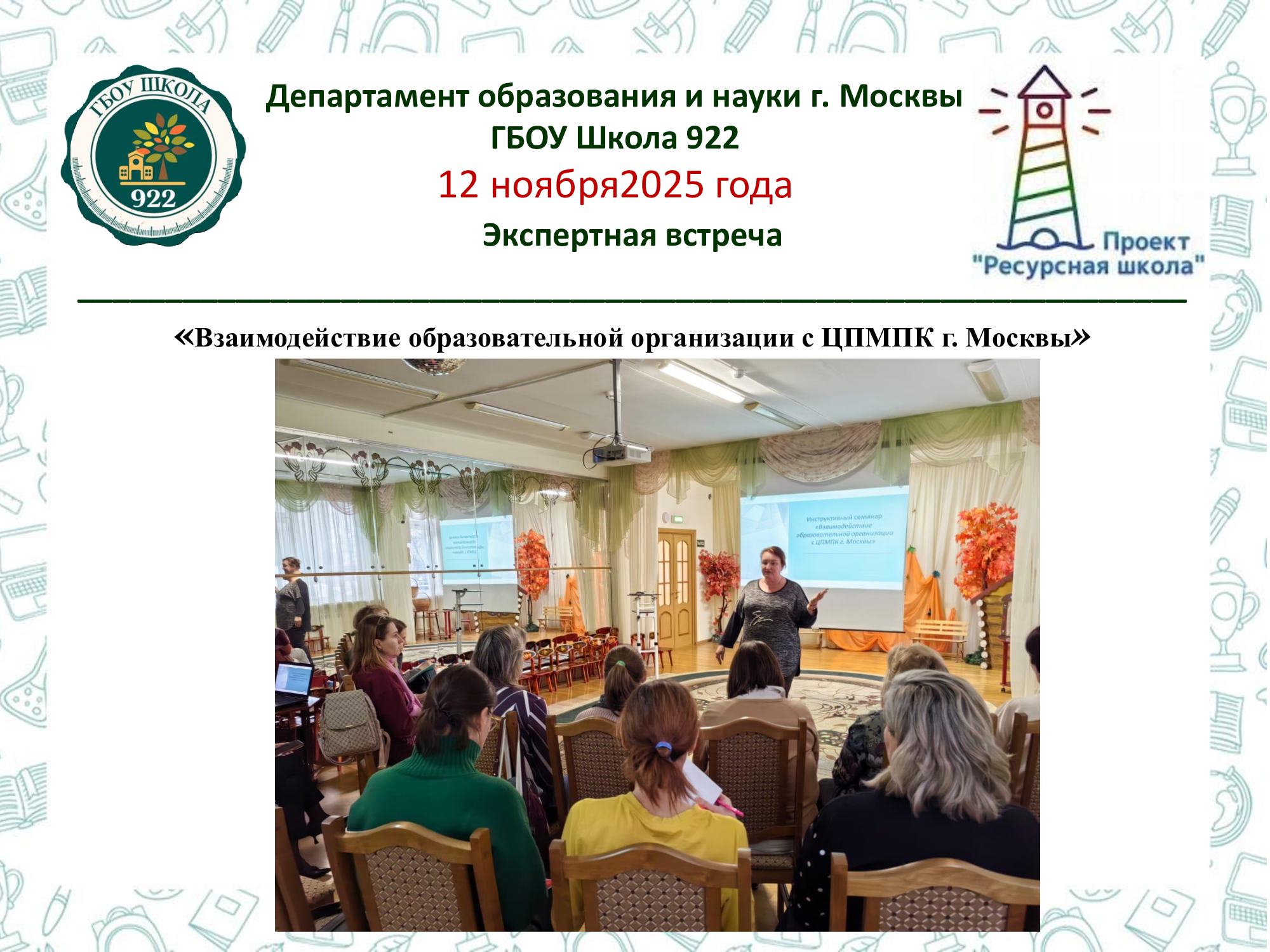 12 ноября прошла экспертная встреча по теме: «Взаимодействие образовательной организации с ЦПМПК г. Москвы»
