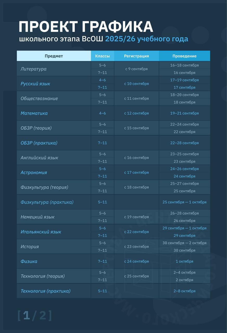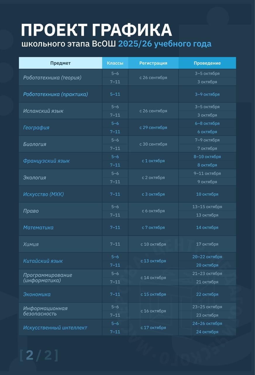 Не забудьте посмотреть график школьного этапа ВсОШ!
